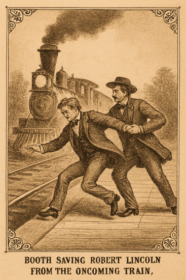 On a crowded train platform in Jersey City, New Jersey, Robert slipped and nearly fell beneath the wheels of a moving locomotive. Edwin, a famous actor standing nearby, grabbed his collar and pulled him to safety.