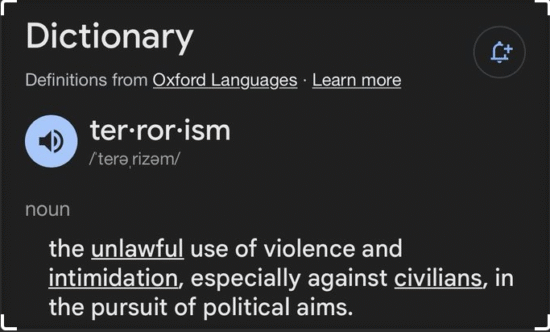 The combination of violence and political gain is THE problem. Using brute force to achieve political aims crushes democratic principles, erodes institutional credibility, and ignites conflicts that can end in societal downfall.